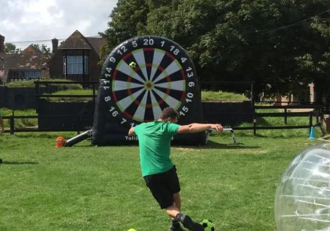 Over the course of an hour, youβll combine football skills with dartboard tactics as you aim Velcro footballs at a huge inflatable target.